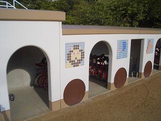 汽車の一輪車のおうちへスケーターや一輪車をきれいにならべてしまいます。